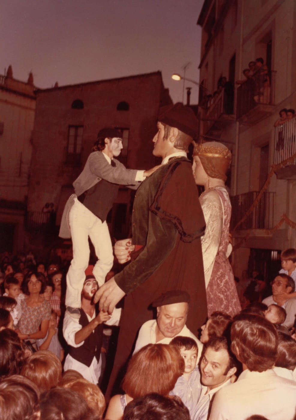 Foto 5. L'Home de la Barra a la Festa Major de Maig del 1982. El cap és l'original del 1870. Arxiu Josep Minguell