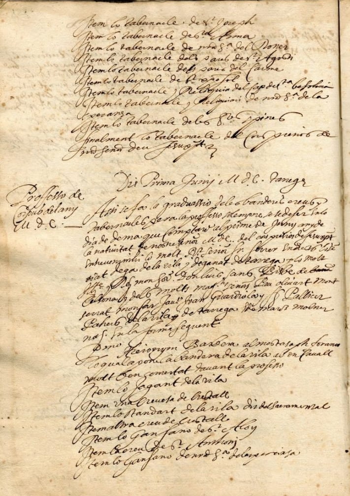 “… al devant de tot los jagants, un ball de bastonets, un de Valencians y dos balls de Cristians i Moros”