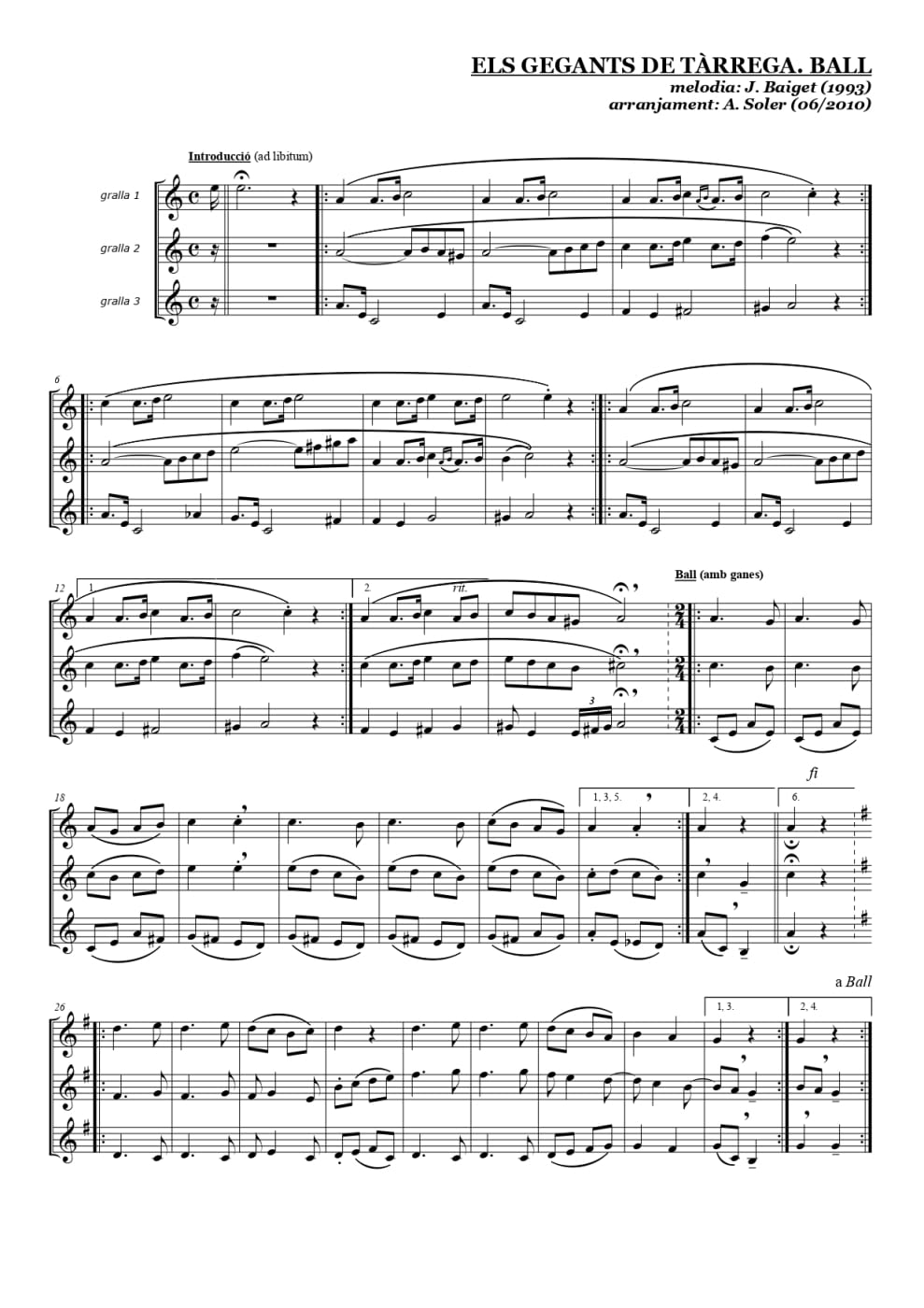 Annex 1: Partitura del Ball de Gegants de Tàrrega
