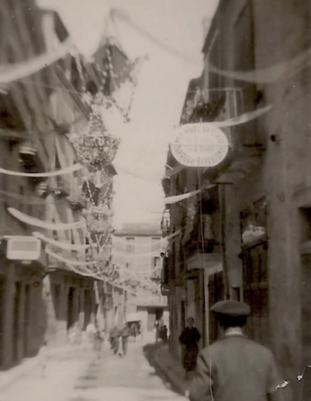 Carrer Sant Joan engalanat durant unes Festes de la Mercè dels anys 30 del segle passat. Foto cedida per Maria Salat